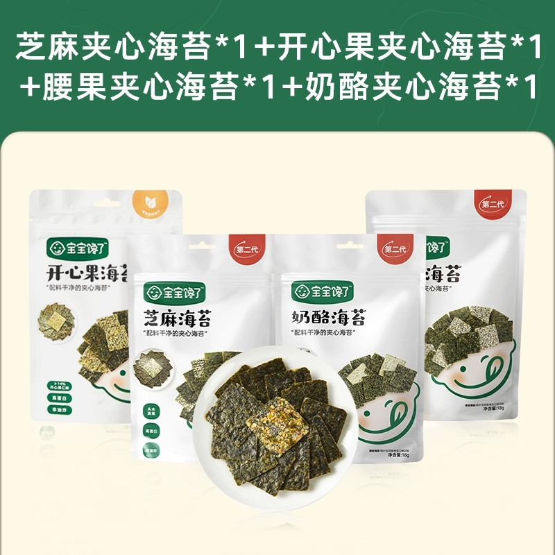 | nameOriginal | Baby is craving for seaweed sandwich crisps ready-to-eat children's snacks without added salt, free baby food supplement recipe |