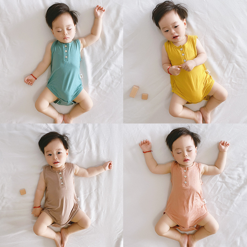 | nameOriginal | Baby jumpsuit 2024 summer new modal children's clothing baby climbing clothes baby solid color home clothes |