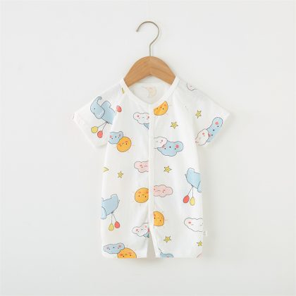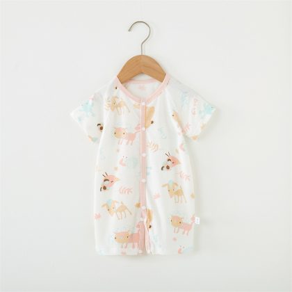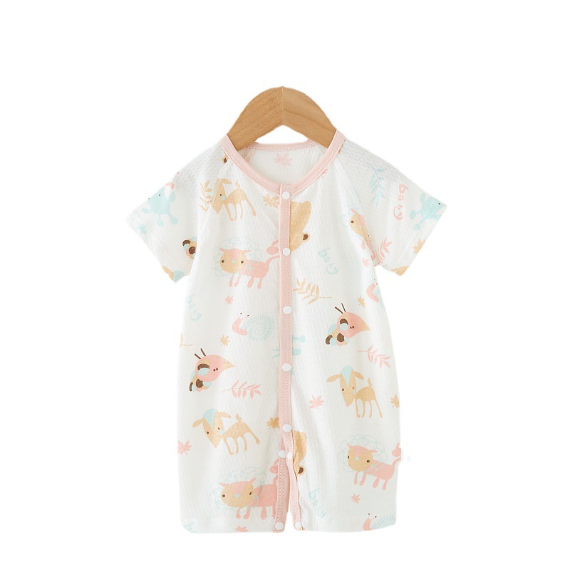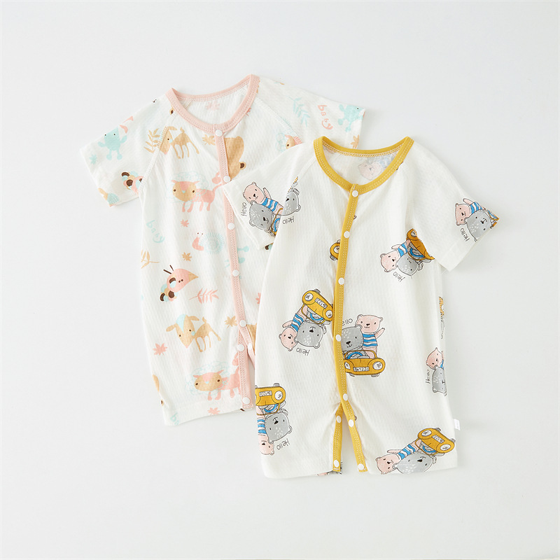 Baby Jumpsuit Pure Cotton Short-sleeved Hassel Summer Thin Baby Clothes Boneless Climbing Suit Newborn Pajamas Category a