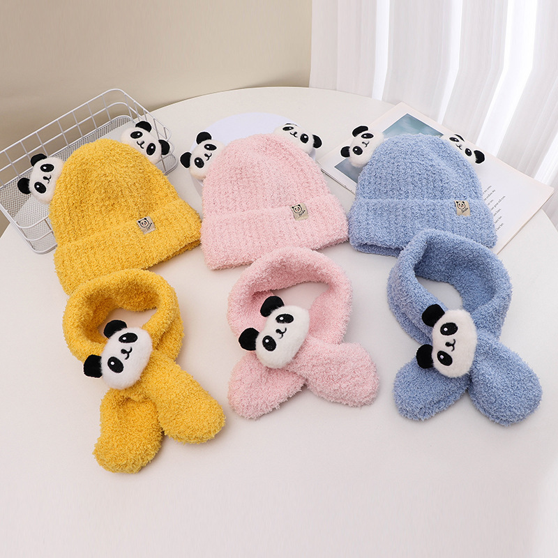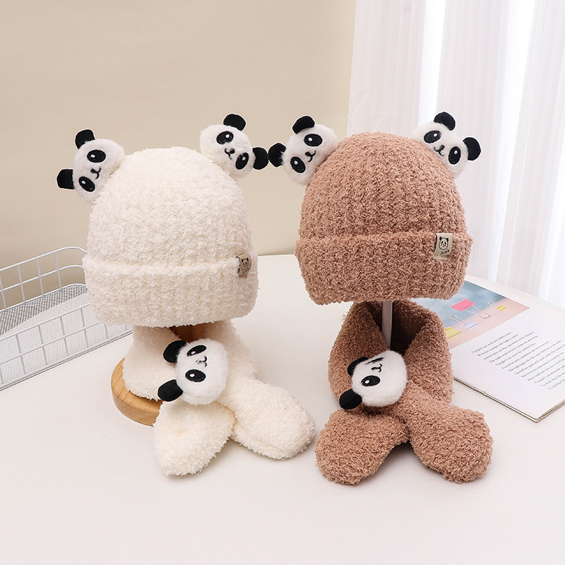 | nameOriginal | Baby knitted plush hat scarf two-piece set autumn and winter children's cartoon panda earmuffs baby warm hat |