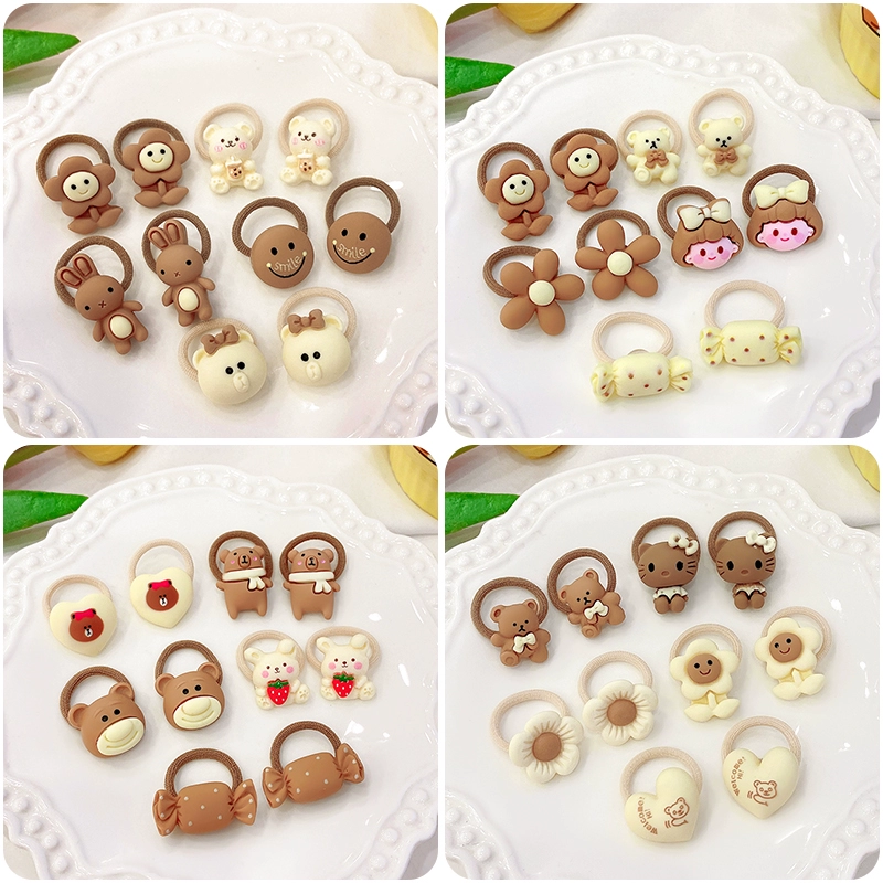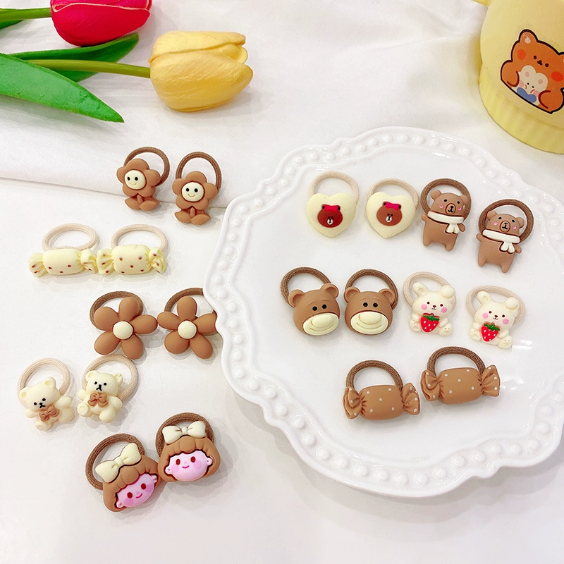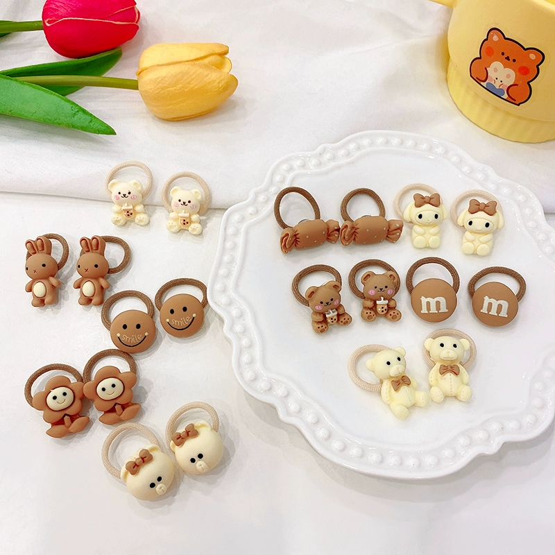 | nameOriginal | Baby milk tea color cartoon bear rubber band hair band small size does not hurt hair hair rope girl baby hair accessories |
