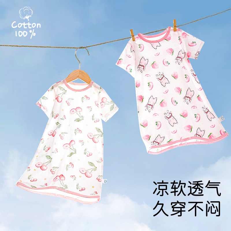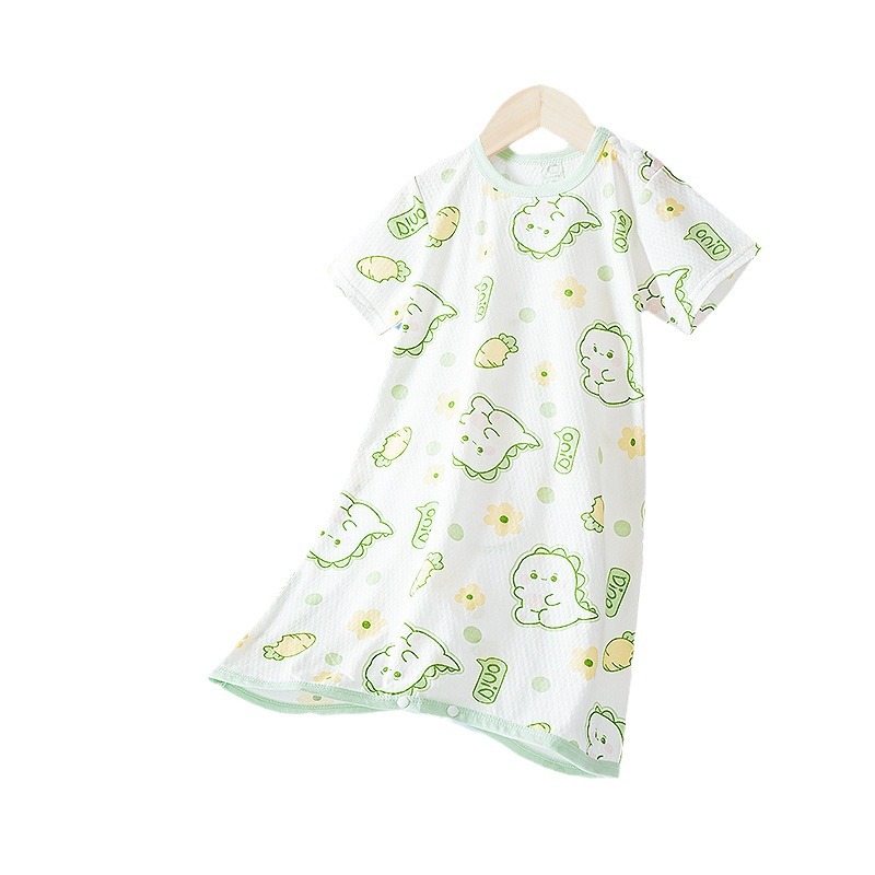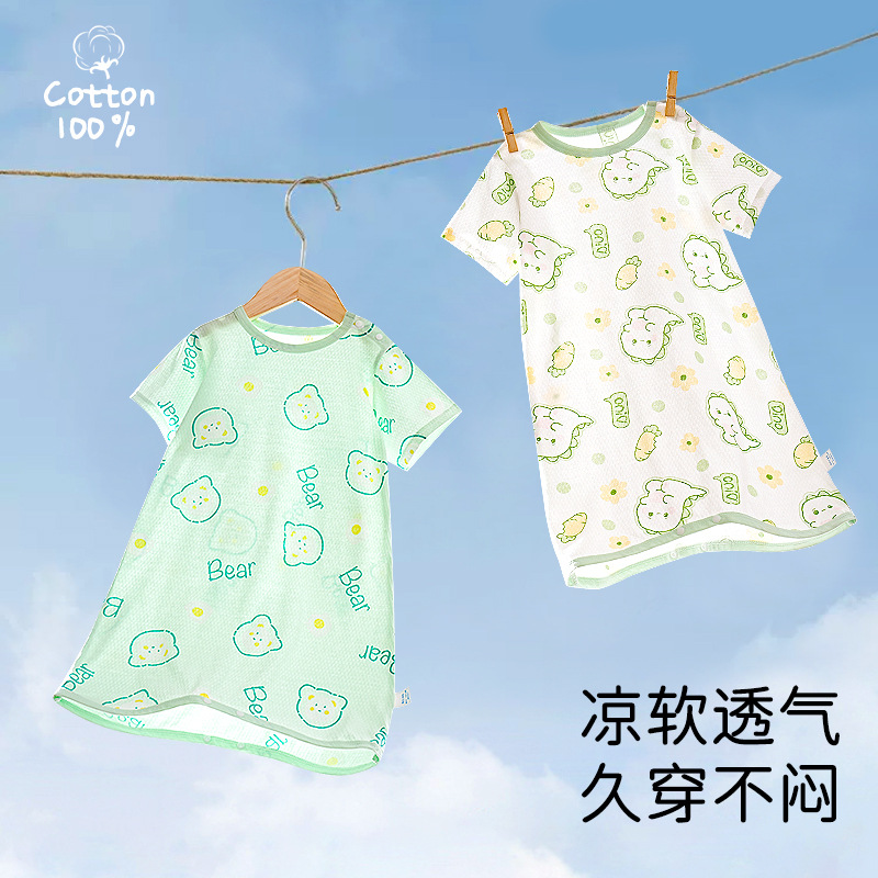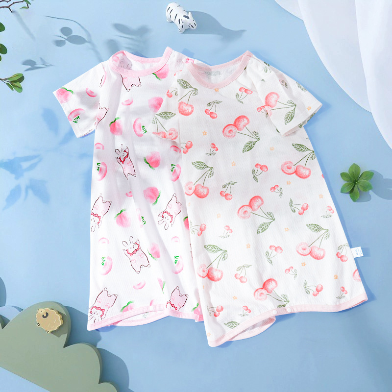 Baby Pajamas Summer Boys and Girls Pure Cotton One-piece Short-sleeved Summer Thin Air-conditioning Clothing Baby Kick-proof Sleeve Nightgown