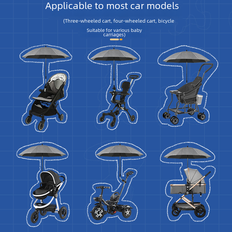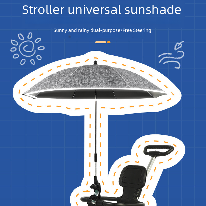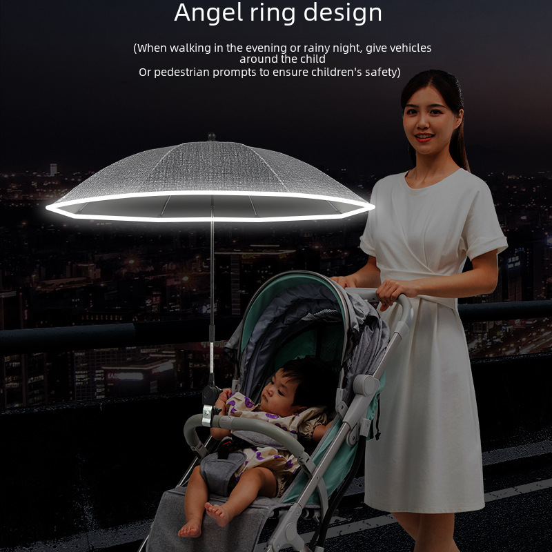 Baby Ride Umbrella Baby Stroller Umbrella Reflective Strip Anti-UV Sunshade Umbrella Walking Baby Umbrella Children's Umbrella Black Sun Umbrella