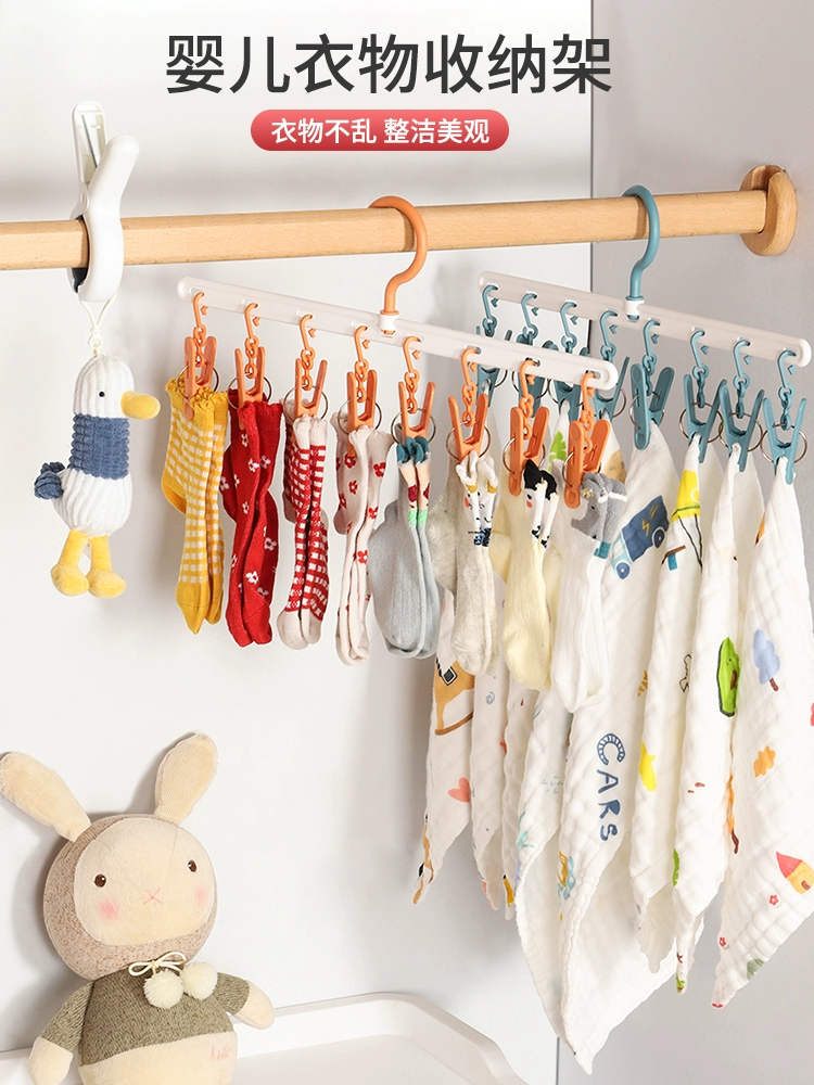 Infant mouth towel, wardrobe hat, storage and organizational artifact multi -function hook free punching baby socks wall -mounted