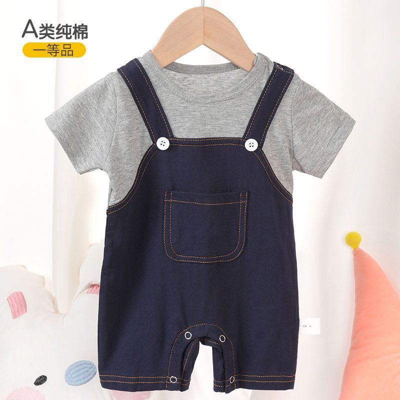 | nameOriginal | Baby Short-sleeved jumpsuit for boys and girls baby handsome strap fake two-piece summer newborn jumpsuit climbing suit |