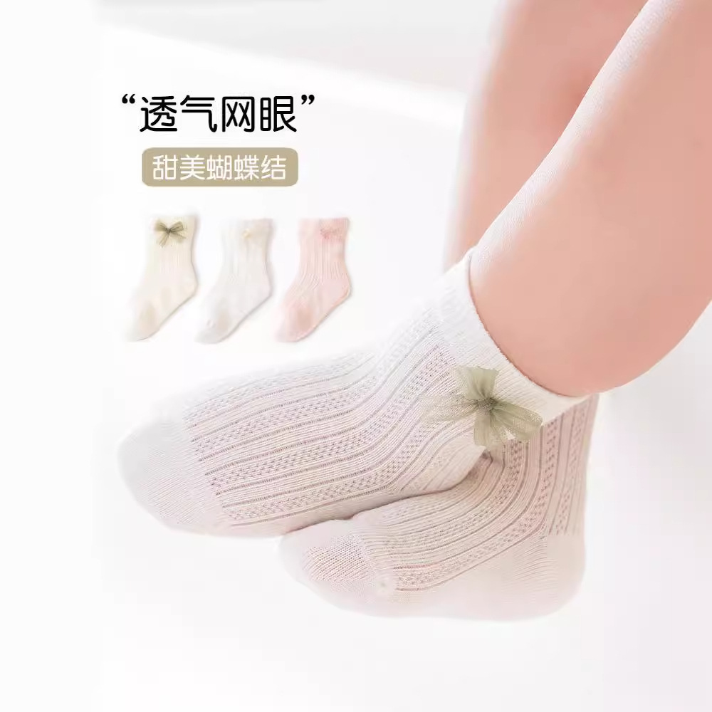 | nameOriginal | Baby socks spring and summer new combed cotton mesh breathable children's socks bow comfortable girls tube socks |