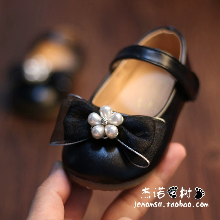 Baby spring and autumn bow shallow mouth children’s leather shoes