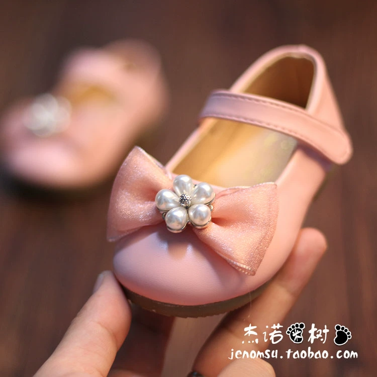 Baby spring and autumn bow shallow mouth children's leather shoes