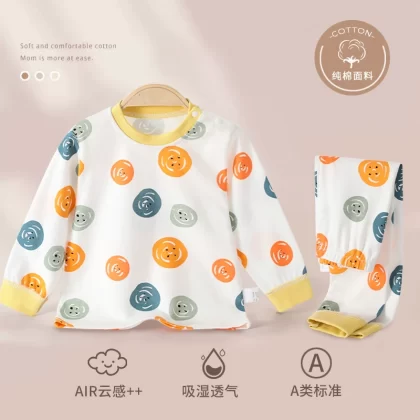 Baby spring and autumn long -sleeved pure cotton male and female children’s underwear suits