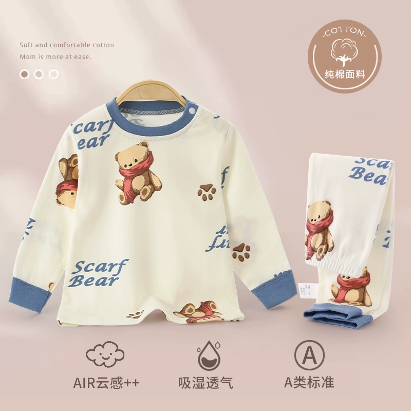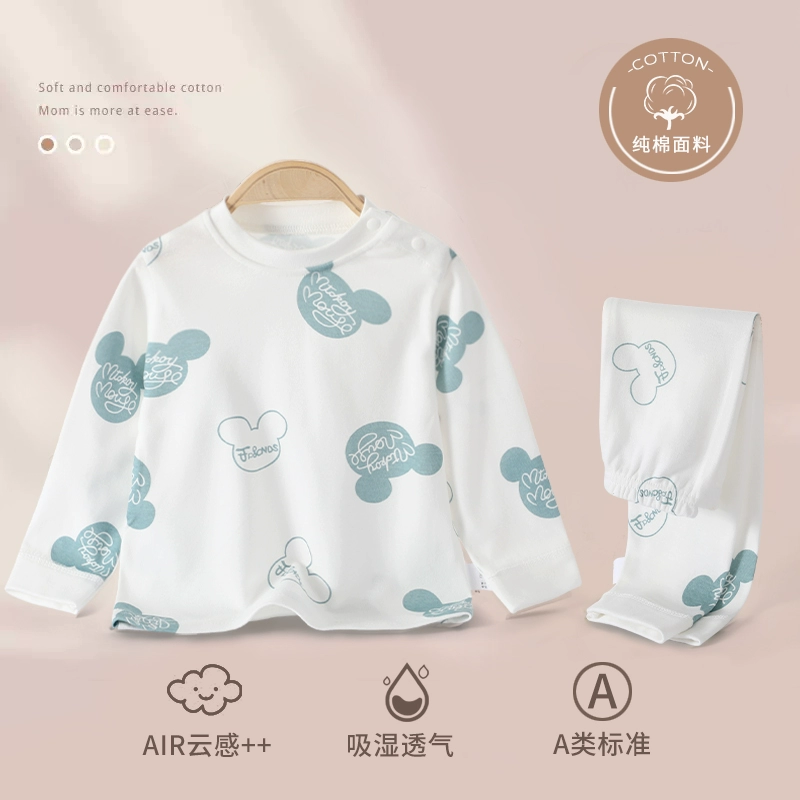 Baby spring and autumn long-sleeved pure cotton underwear set for boys and girls