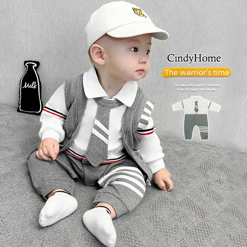 | nameOriginal | Baby spring and autumn pure cotton Western style stitching jumpsuit tie romper romper vest coat baby spring and autumn clothes |