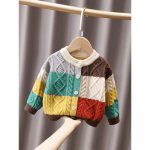 Baby Sweater Cardigan 2023 Autumn New Small and Medium-sized Children’s Personality Contrast Color Girl’s Knitted Jacket Children’s Retro Clothes