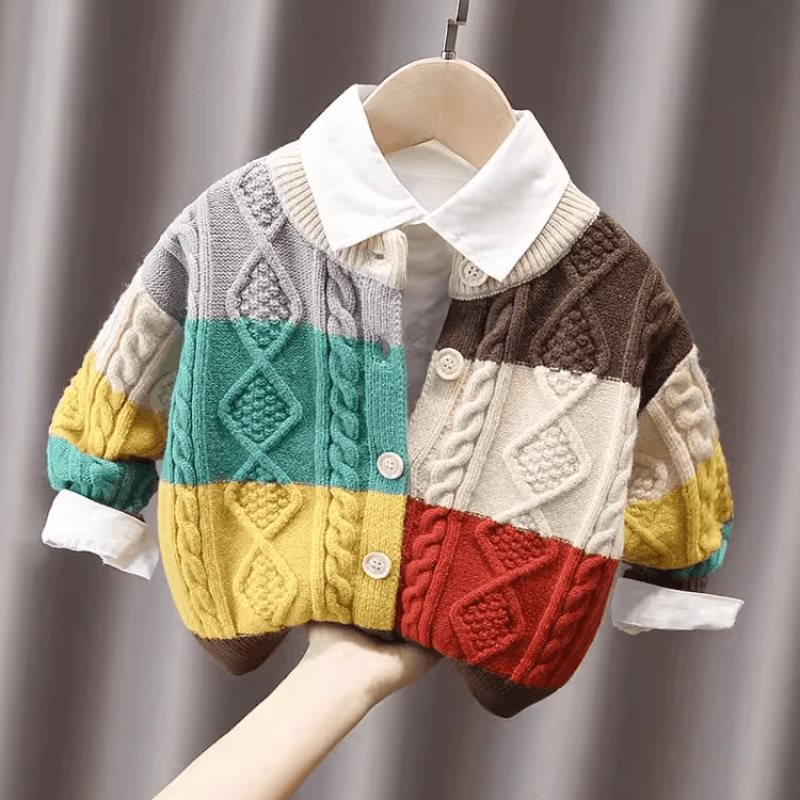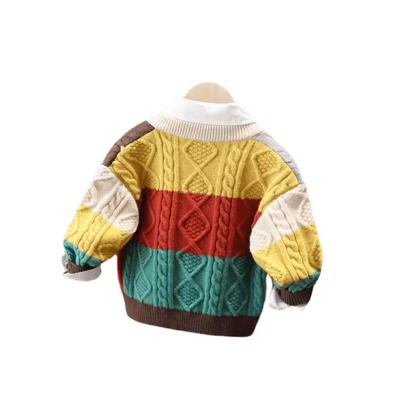 Baby Sweater Cardigan 2023 Autumn New Small and Medium-sized Children's Personality Contrast Color Girl's Knitted Jacket Children's Retro Clothes