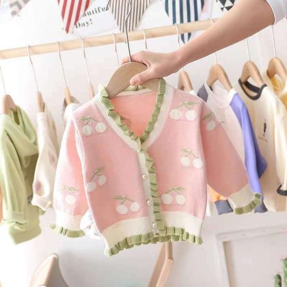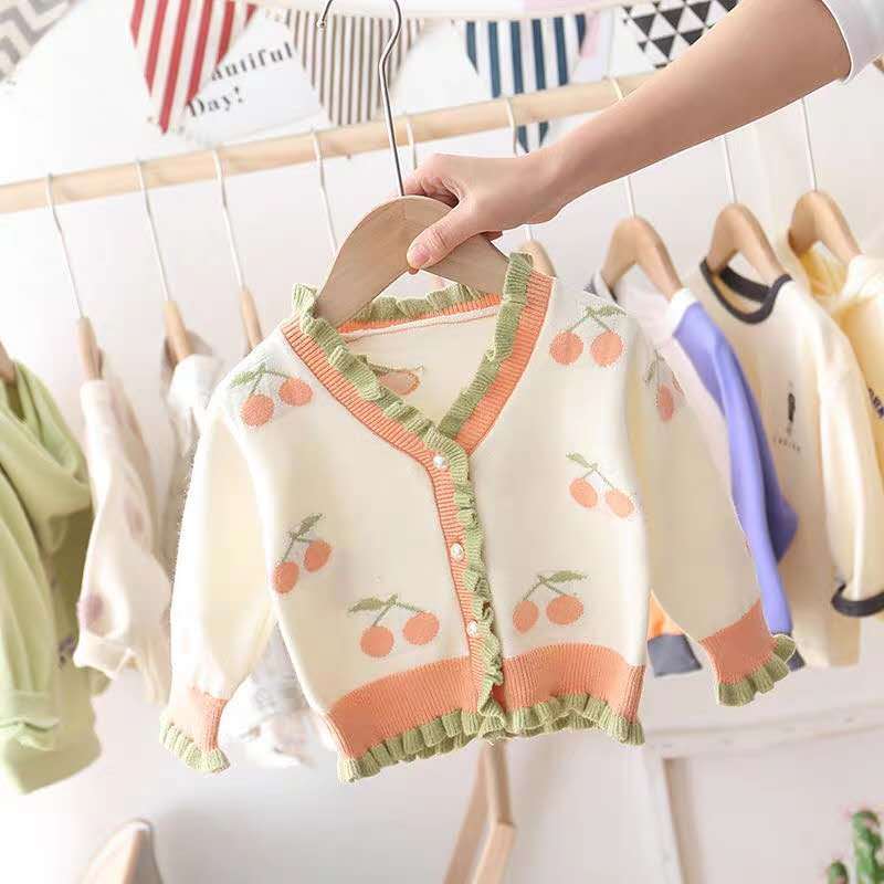 Baby Sweater Coat Women’s Cardigan 2023 New Spring and Autumn Western Style Small and Medium-sized Girls Korean Style Children’s Knitted Sweater