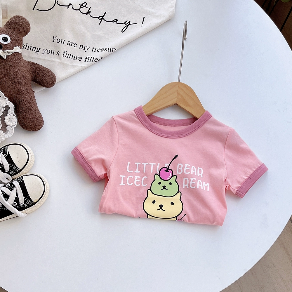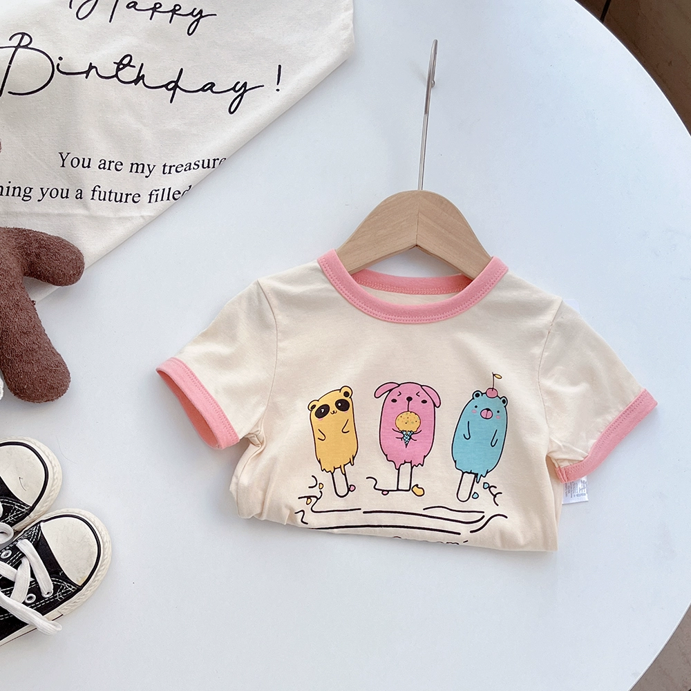 Baby thin short-sleeved cartoon round neck cotton t-shirt