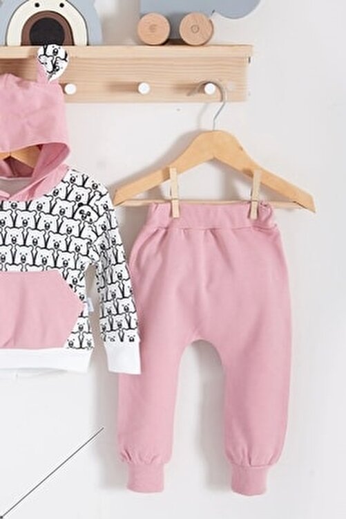 Tiny Bears Patterned 2 Pcs 100% Cotton Baby Girl Set Product Made in Turkey, Skin Friendly Fabric