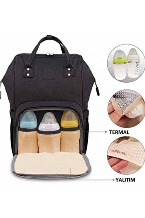 Mother Baby Care Backpack Size of the bag: Height: 42 cm Width: 33 cm Width: 20 cm Inside the BabyLondy Mother Baby Care Backpack consists of 4 compartments. You can put clothes, rags or baby accessories in the inner compartments You can put dirty laundry without worrying in the waterproof dirty laundry compartment Outer compartments: Drinker eye on the right side of the bag, Wet wipes eye on the left side of the bag 3 Eyes where you can put real Thermo Featured Bottle or anything cold-hot (2-4 hours effective) and again a section across these three eyes, Fully adjustable shoulder straps available. Thanks to the stroller hangers located at the top of the bag, you can easily hang the bag in the stroller BabyLondy Mom Baby Care Bag is absolutely phytaalate-free. BabyLondy Mother Baby Care Bag is absolutely free of carcinogens. The fabric is antiallergic and phytaalate-free. BabyLondy Mother Baby Care Bag is 100% Domestic Production. BabyLondy Mother Baby Care Bag is 1 Year Warranty. You can reach our company Gnd VirtualDozacılık San.Tic.Ltd.Şti. without hesitation in a problem you have with your bag.