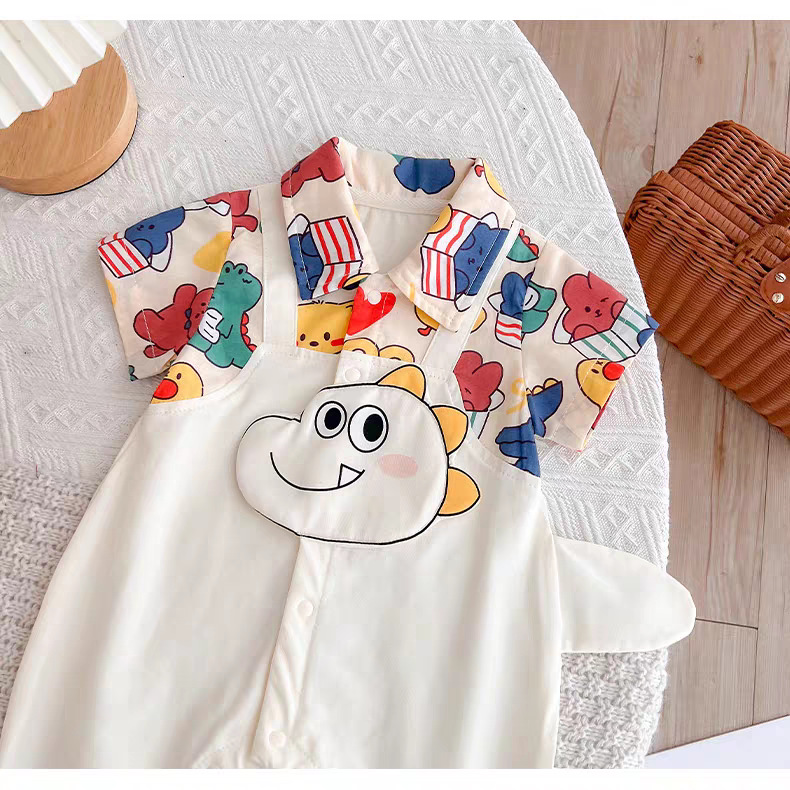 Baby's Fake Two-piece Short-sleeved One-piece Suit Summer Thin Baby's Ha-ha Clothes Climbing Suit Newborn Clothes Super Cute and Cute Summer Clothes