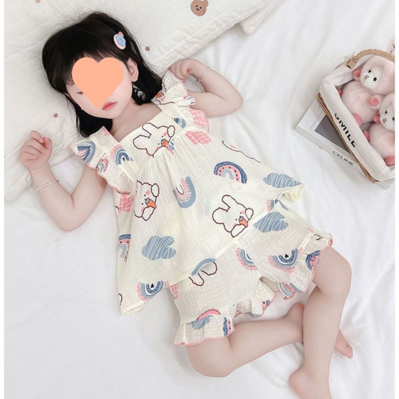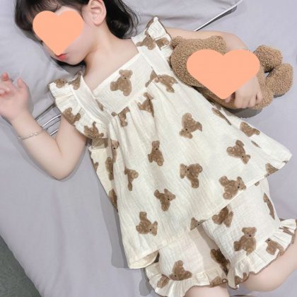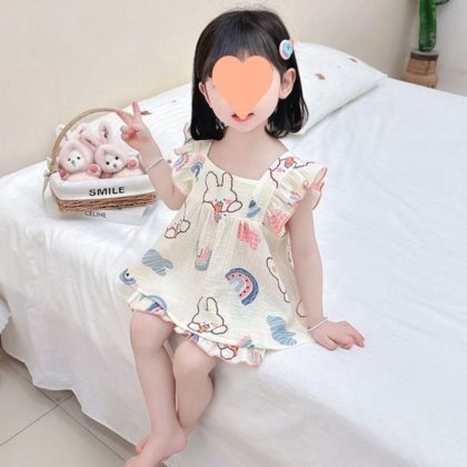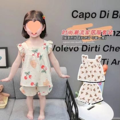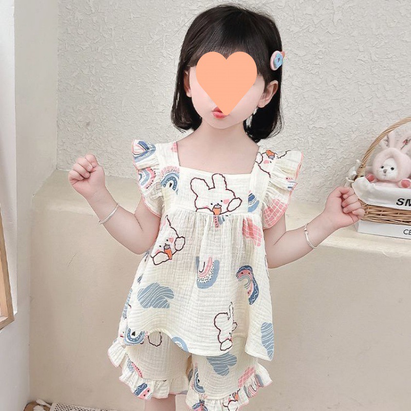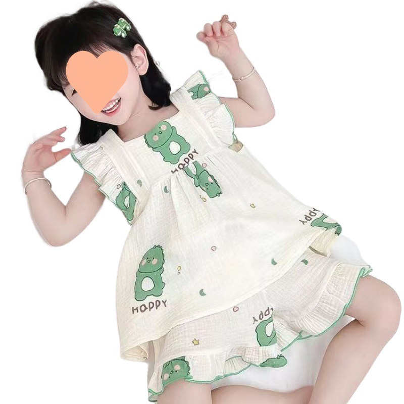 | nameOriginal | Baby's Gauze Pajamas Girls' Summer Short-sleeved Shorts Children's Large Thin Sling Princess Style Home Clothes suit |