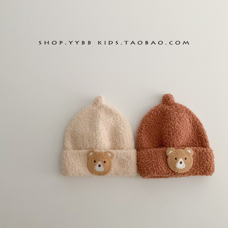 Baby’s Hat Baby’s Spring and Autumn Bear Knitted Children’s Thickened Pullover Cap Warm Wool Cap Autumn and Winter for Boys and Girls