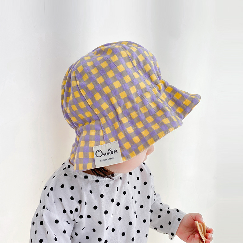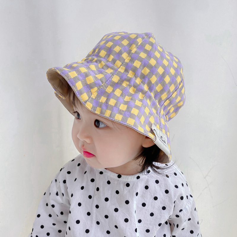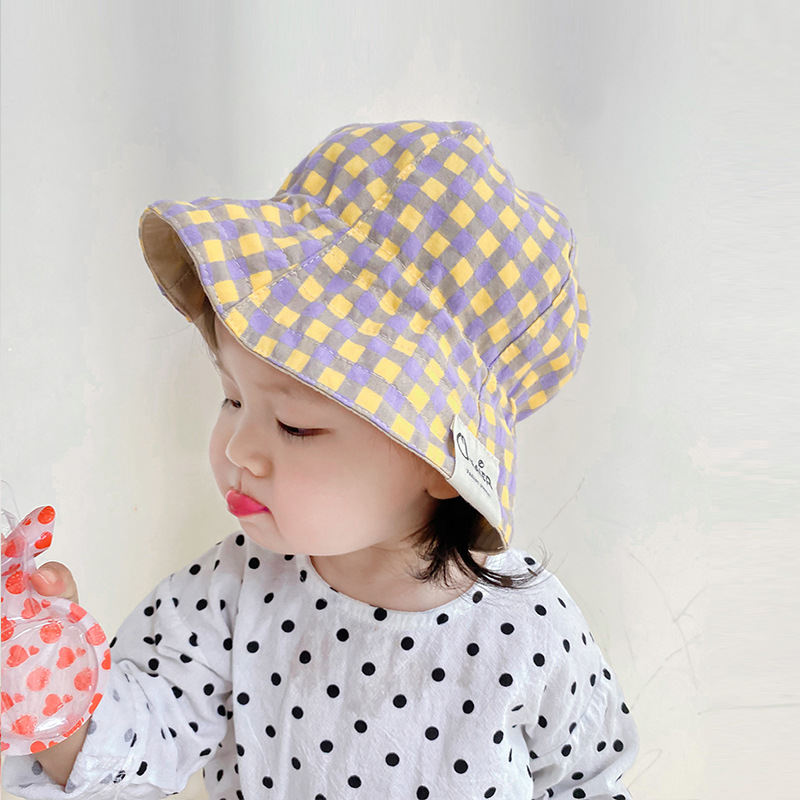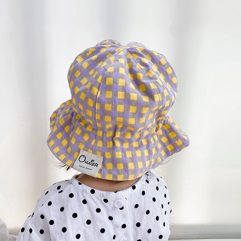 Baby's Hat Spring and Autumn Thin Fisherman's Hat Baby's Summer Adjustable Children's Korean-style Plaid Sunscreen Hat for Women