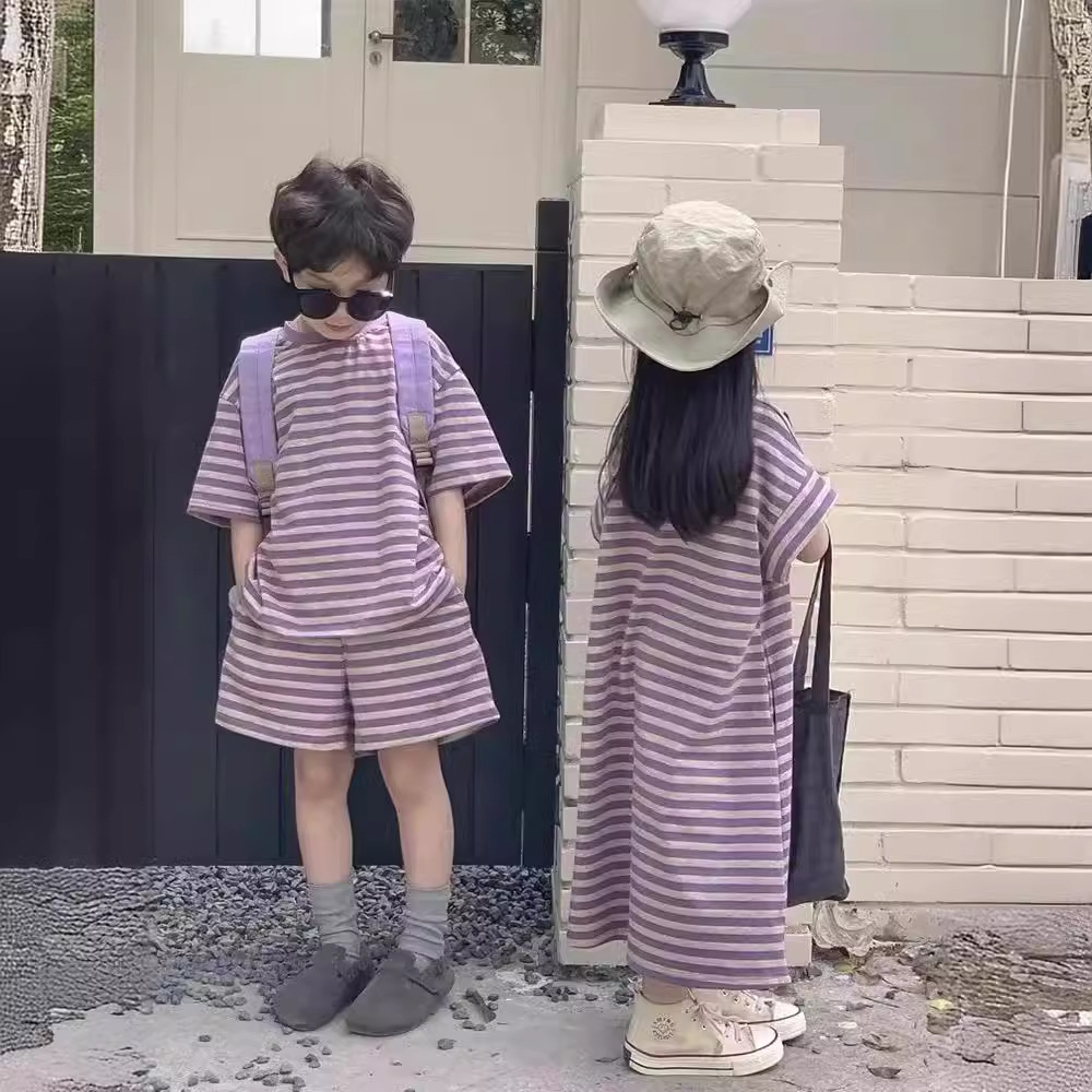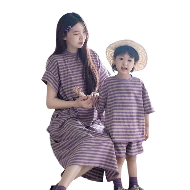 | nameOriginal | Baby's Online Celebrity Fried Street Parental Dress Summer Dress Boys' Striped Short-sleeved Shorts suit Mother and Daughter Purple Striped dress |
