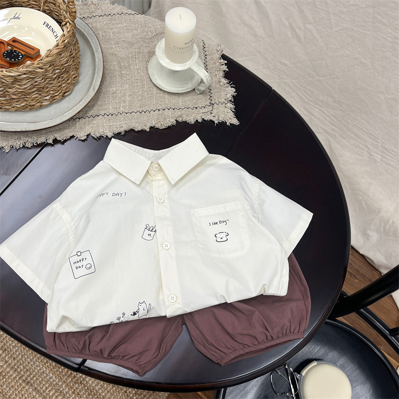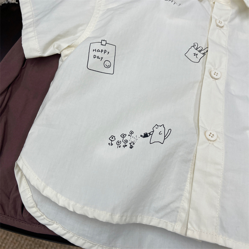 Baby's short-sleeved shirt cotton thin cardigan children's summer children's clothing shirt boys' cartoon shirt Korean fashion