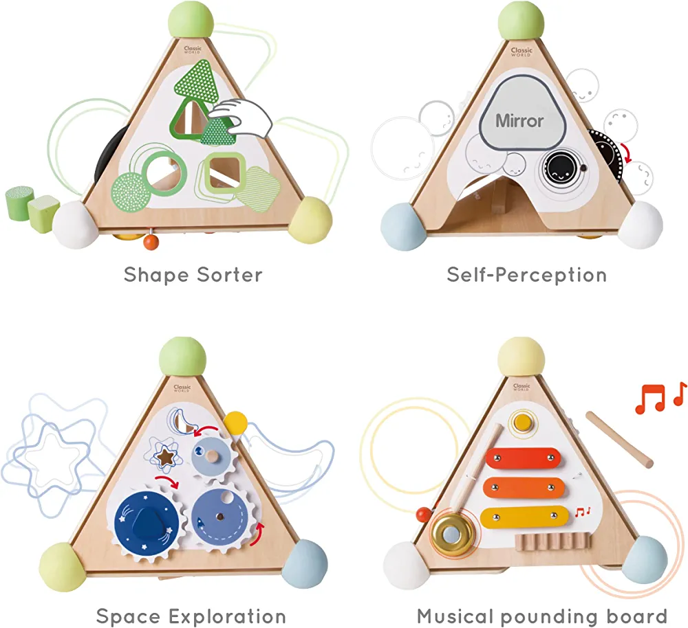 | nameOriginal | Classic World Wooden Activity Cube, Black Discs, Mirror, Shape Sorter, Space Gear Activity Center for Baby |