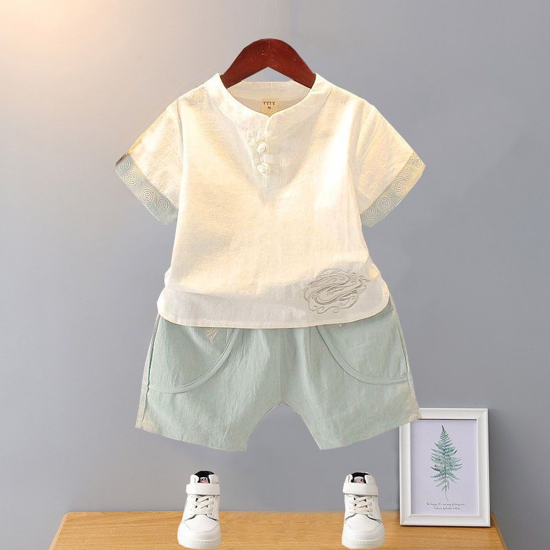 Baby's Summer Clothing Hanfu suit Children's Clothing Boys and Girls Summer Short-sleeved Tang Suit Children's Chinese Style Retro Two-piece Set