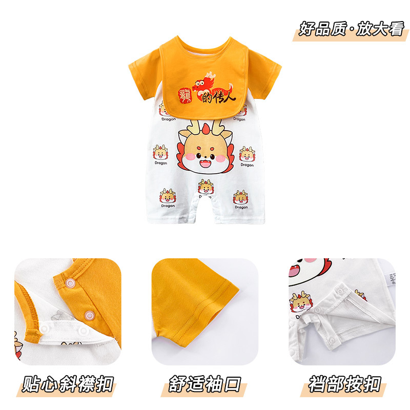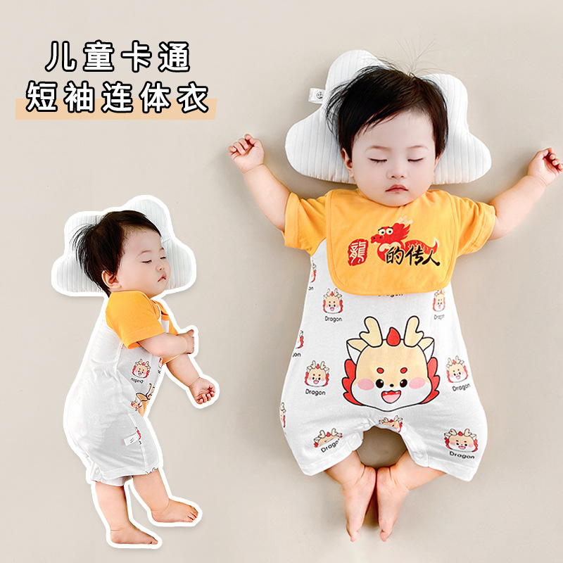 Baby’s Summer Pure Cotton Ultra-thin Harper Men’s and Women’s Short-sleeved Single-sided Slip Wipe Climbing Wear Baby’s Kick-proof One-piece Home Wear