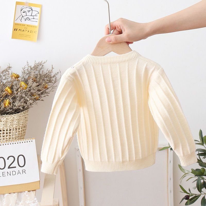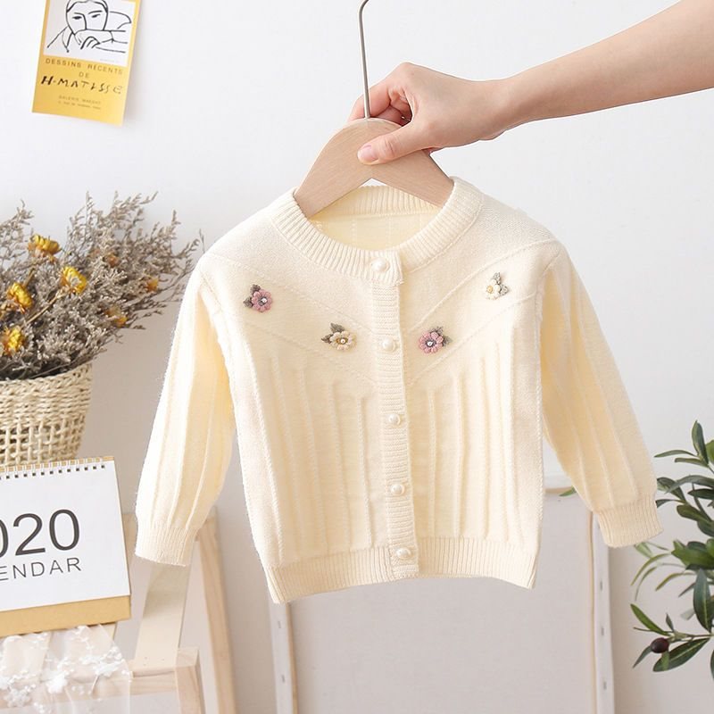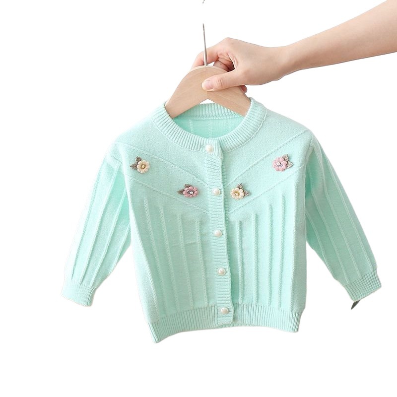Baby's Sweater Cardigan Girls' Three-dimensional Small Flower Knitted Coat 2021 Spring and Autumn New Children's Western Style Wool Outer Wool