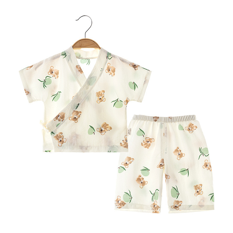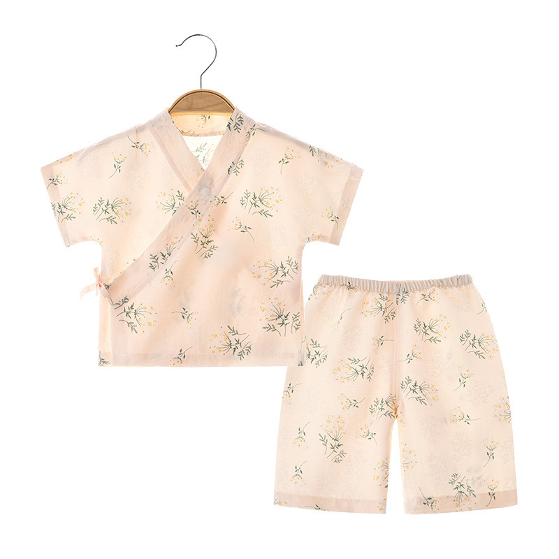 Baby's Thin Short-sleeved suit Ultra-thin Bobo Cotton Pajamas Summer Children's Shorts Loose Baby's Air Conditioner Monk Suit