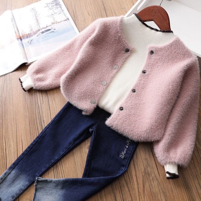 | nameOriginal | Baby's Top Girls' Cardigan Spring and Autumn Imitation Mink Velvet Western Style Knitted Sweater Children's Korean Loose Hot Flashes |