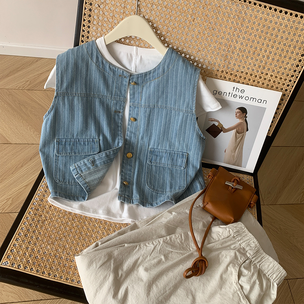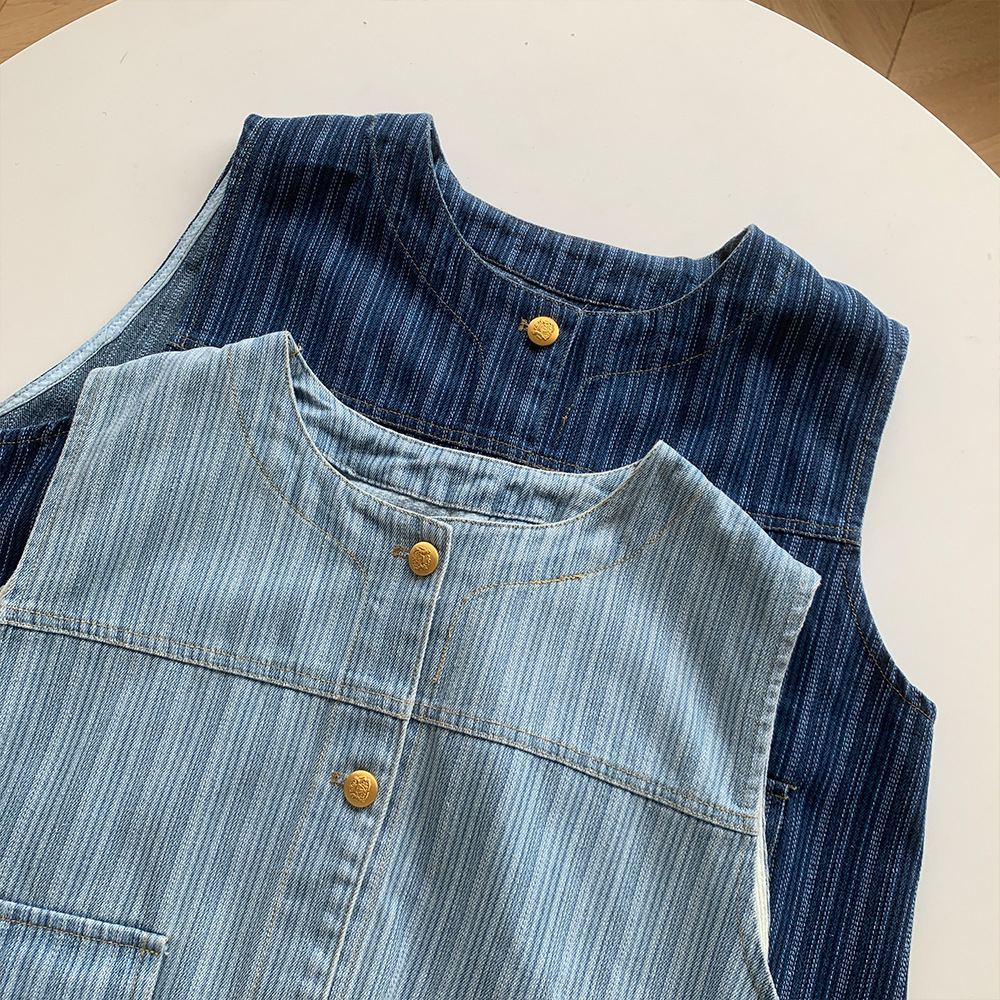 | nameOriginal | Back Large Split Western Style Heavy Industry Sleeveless Denim Jacket Vest Round Neck Gold Button Loose Korean Style Waistcoat Vest |