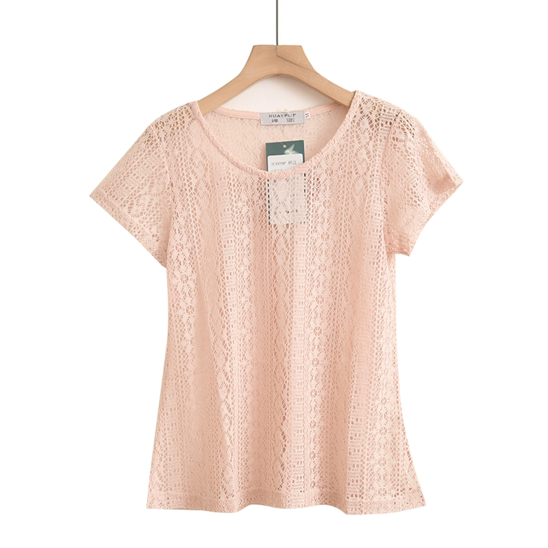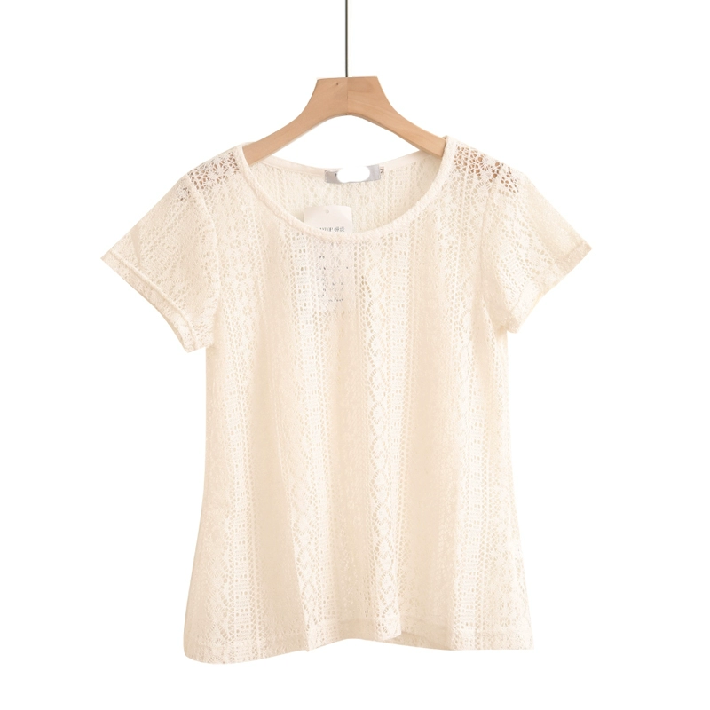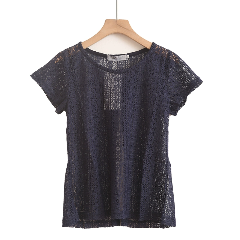Back split bow shirt female summer short Korean version of the bikini outer net red products loose hollow top