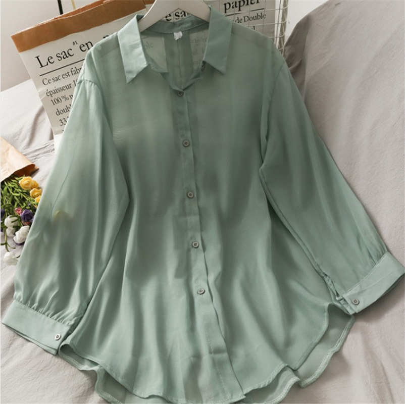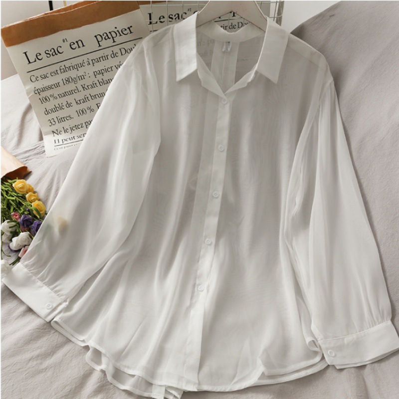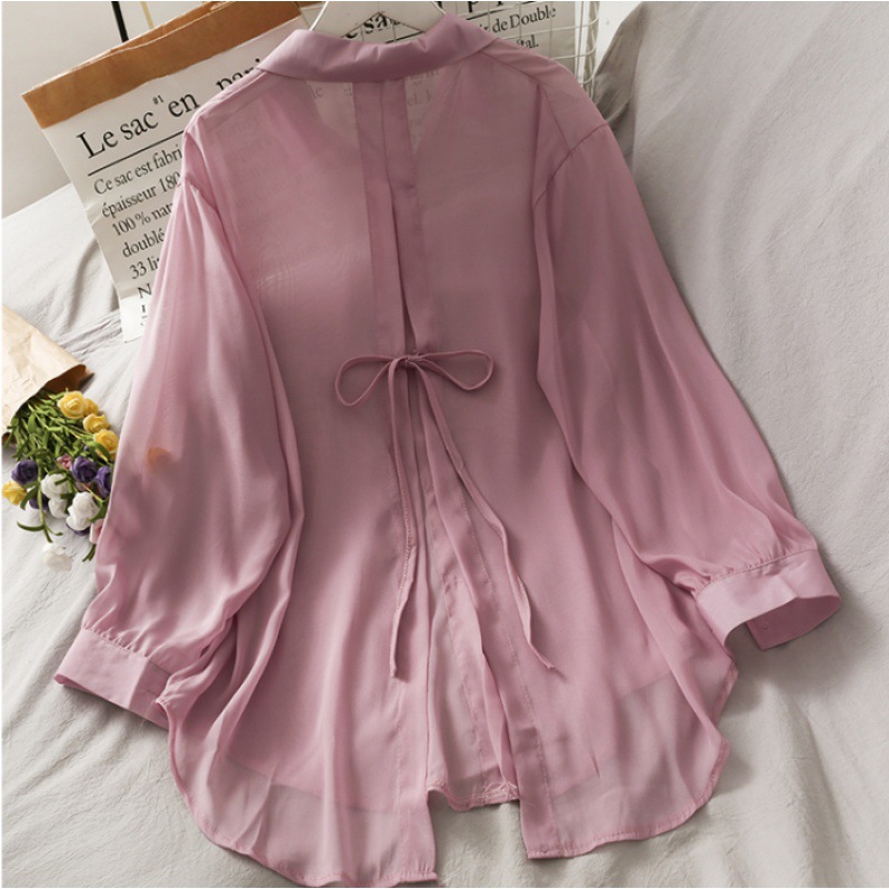 | nameOriginal | Back Split Ice Silk Chiffon Shirt Women's Summer Outer Shirt Ultra-thin UV-proof Breathable Sun-proof Top |