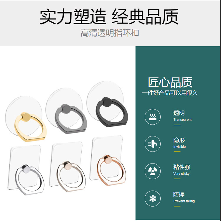 Back sticker transparent crystal mobile phone ring buckle creative transparent metal ring mobile phone stand PC acrylic stand