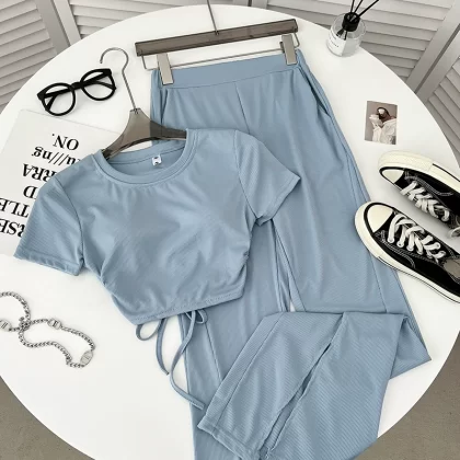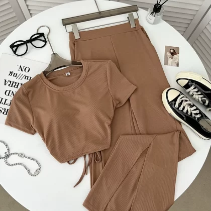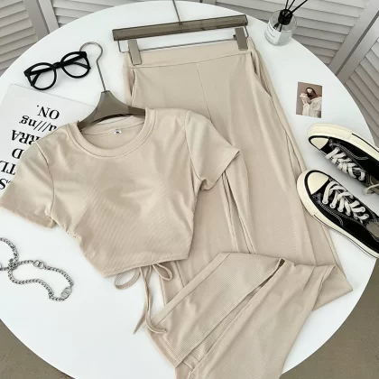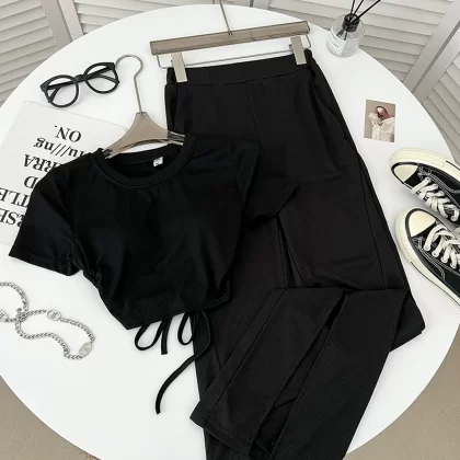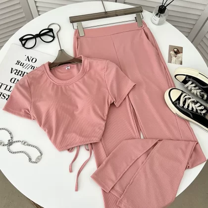 | nameOriginal | Backless elastic waist flared trousers two-piece short-sleeved T-shirt |