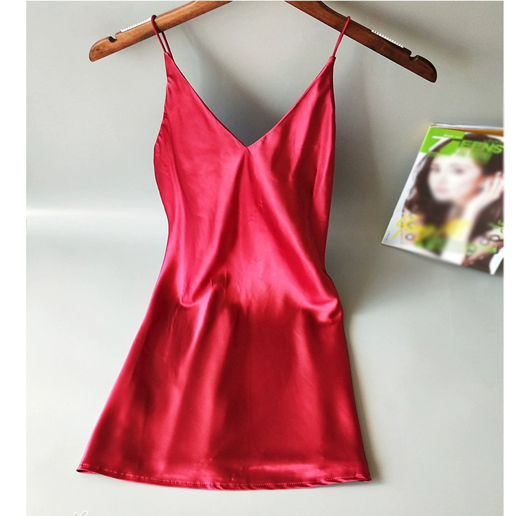 | nameOriginal | Backless sexy V-neck ice silk famous brand suspender nightgown |