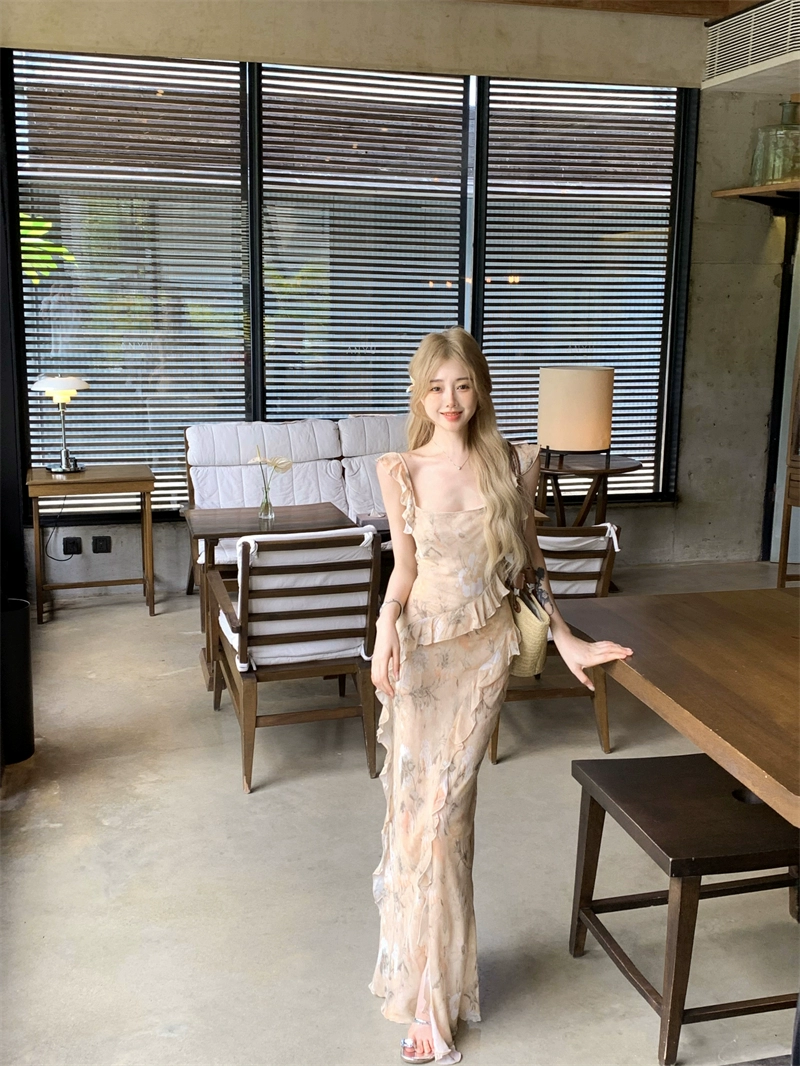 | nameOriginal | Backless slim summer slimming slit suspender dress |