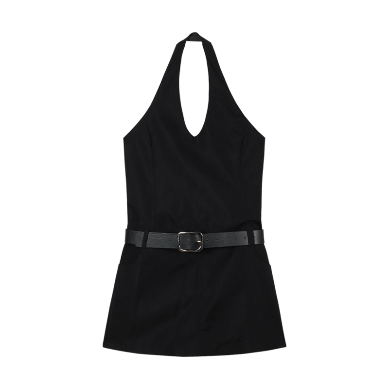 Backless summer A-line slimming and sexy little black dress with halter neck
