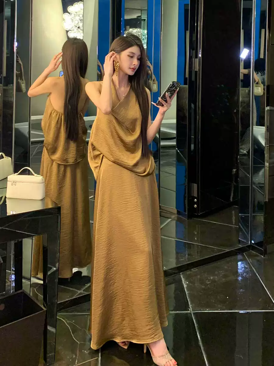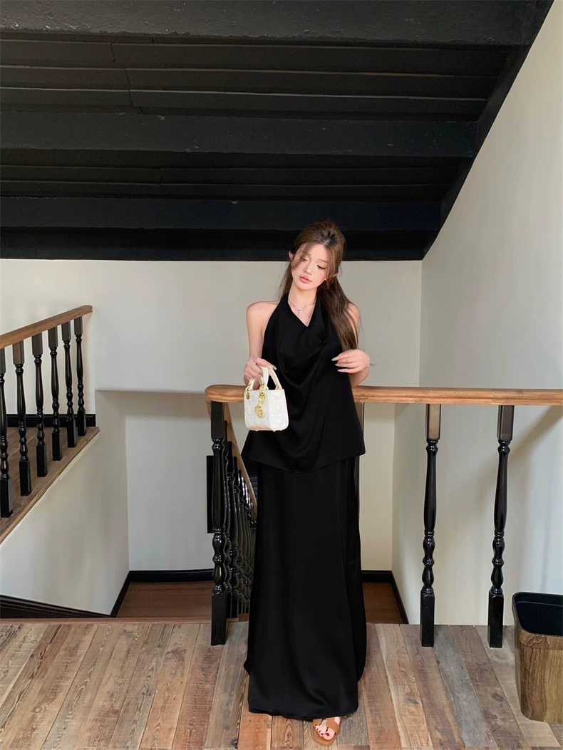 | nameOriginal | Backless swing collar halterneck suspender skirt suit satin |