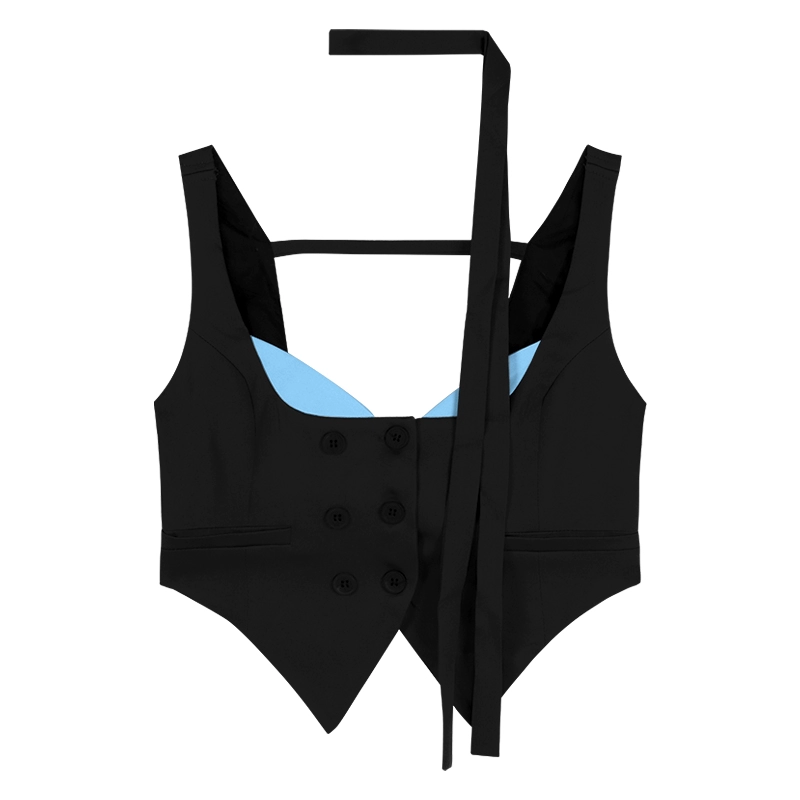 | nameOriginal | Backless vest, contrasting color wide-leg casual pants with bow tie |