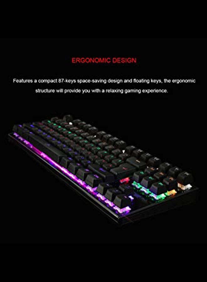 Backlit USB gaming keyboard with 87 keys and colorful LED lights.