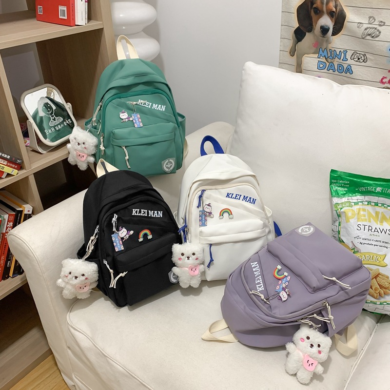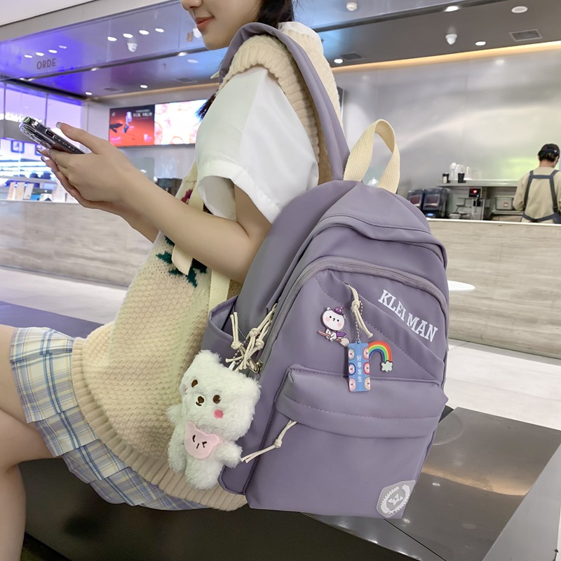 Backpack girls ins nylon simple backpack niche fresh backpack Japanese casual color solid color schoolbag