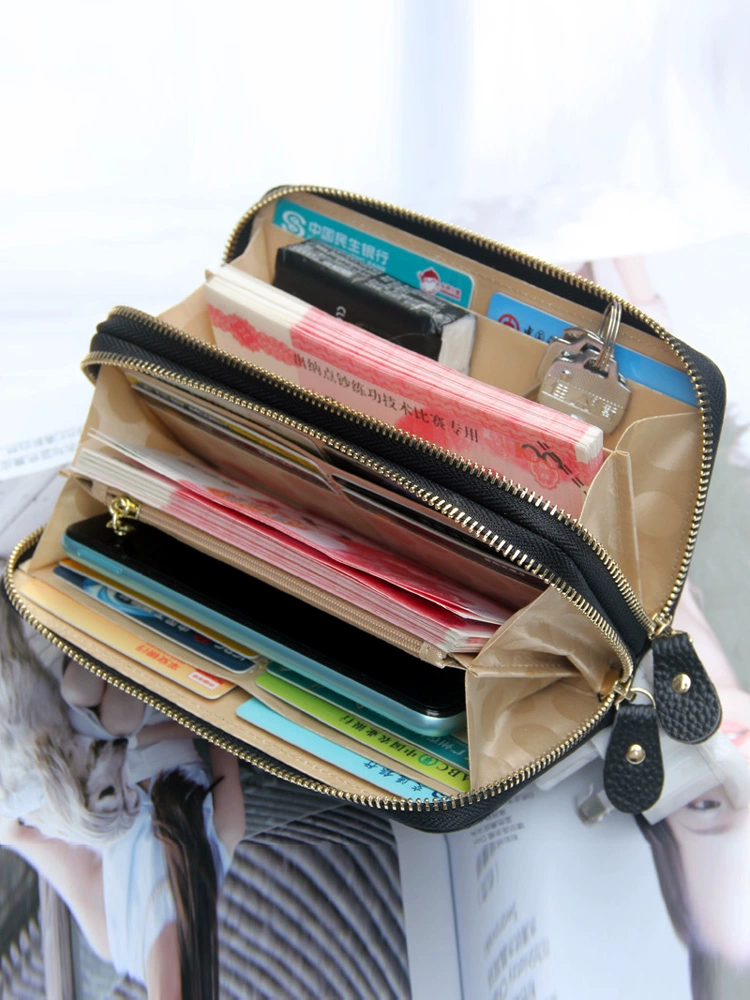 Bag Genuine Leather Women's Wallet Women's Long Large Capacity Green Clutch Bag Birthday Gift Clutch Bag for Mom