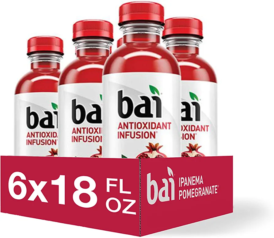 | nameOriginal | Bai Flavored Water, Ipanema Pomegranate, Antioxidant Infused Drinks, 18 Fluid Ounce Bottles, 6 Count |