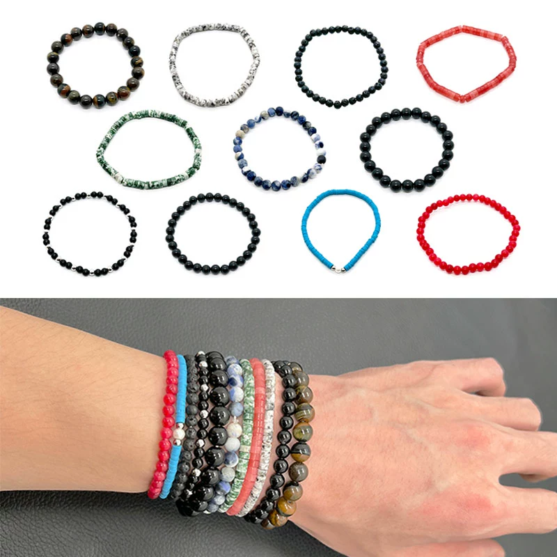 | nameOriginal | Bai Jingting's same style Xiaobai's fashionable and elegant colorful bracelet ring set natural stone obsidian soft pottery stacked peripherals |