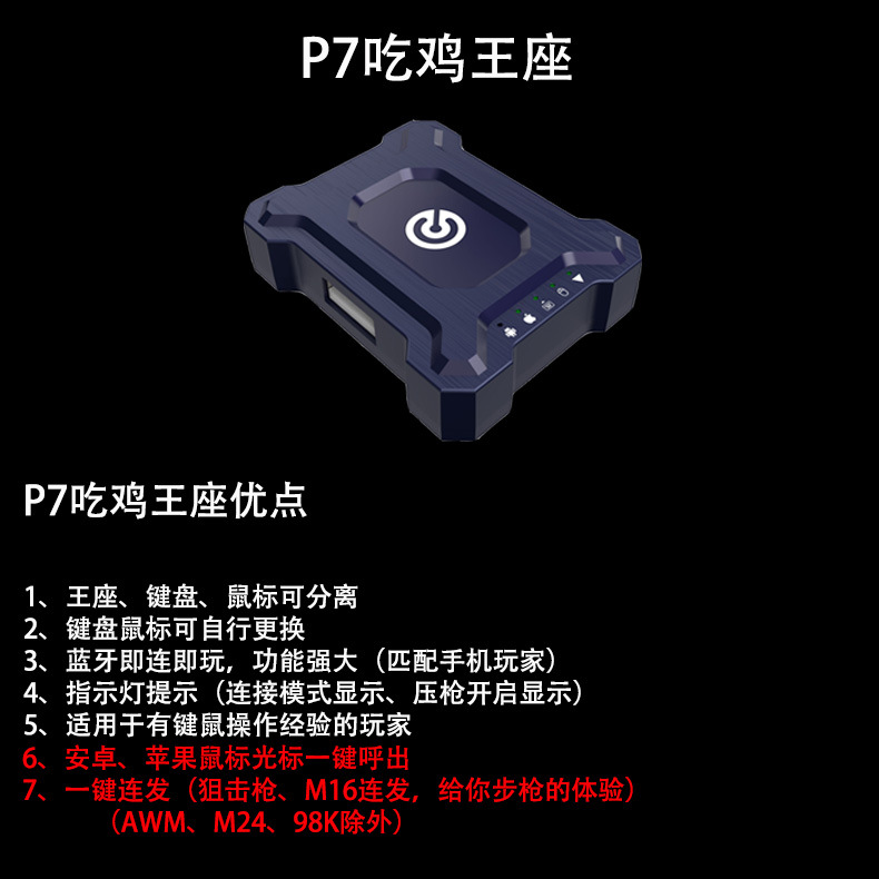 | nameOriginal | Bai Shipai P5 Chicken Eating Game Throne Keyboard and Mouse Converter Jedi Survival Peace Elite Android |