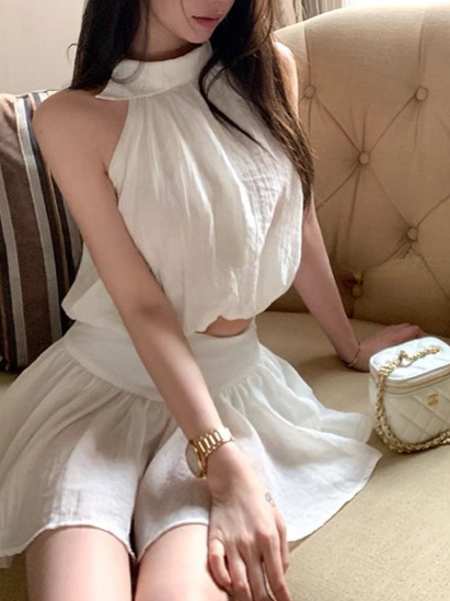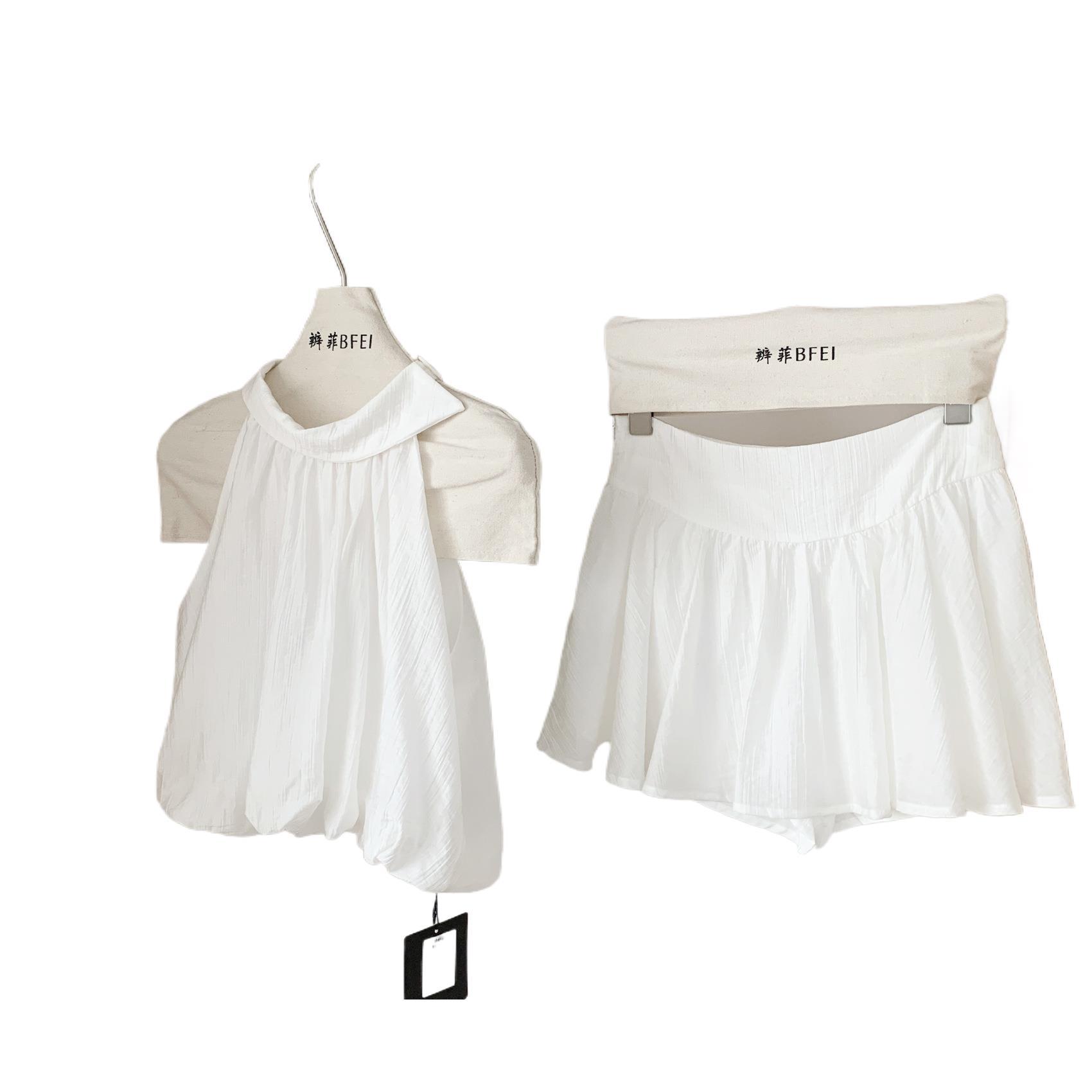 | nameOriginal | Bai Zhizhi suit Women's Summer Dig Shoulder Hanging Neck Bubble Vest Skirt Two-Piece Set |